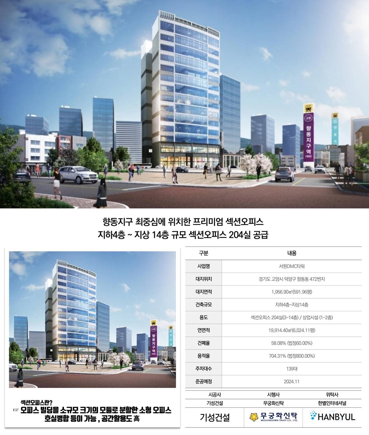 향동지구 내에서도 입구에 위치하여 접근성이 뛰어나며 지하 3층부터 지상 14층까지 이어지는 웅장한 규모를 자랑합니다.